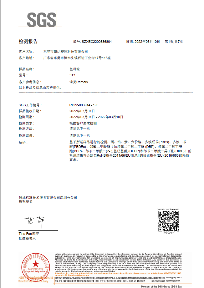 東莞市鵬達塑膠科技有限公司是一家集色母、色粉、功能母粒、染色抽粒、改性工程塑料的研發(fā)、生產、銷售于一體的生產企業(yè),座落于中國塑膠商貿重鎮(zhèn)-廣東省東莞市樟木頭鎮(zhèn),公司建立了一套完善的研發(fā)生產、品質管理、銷售服務體系,依托自身強大的研發(fā)能力及嚴謹高效的管理,生產高品質、高技術含量的健康環(huán)保色母粒和多功能母粒,年生產能力達萬噸,給廣大客戶提供了可靠的交貨保障。